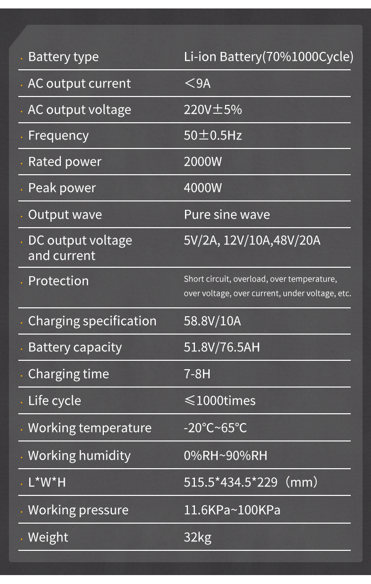Battery capacity:51.8V/76.5AH