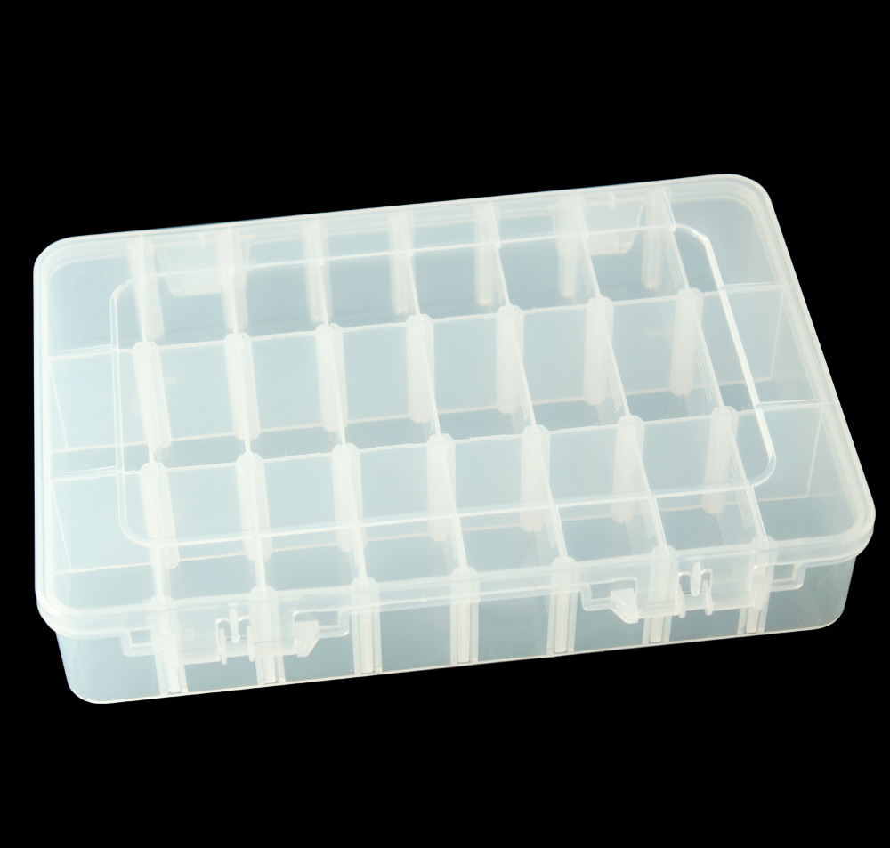1) 材料:透明PP 2) 柔韧的铰链设计,易于打开与保存 3) 有可移动的间隔,大小组合可以不同 4) 折叠时可以节省空间的设计 5) 广泛用于电子元件,药丸,以及鱼钩 鱼饵的存储等行业